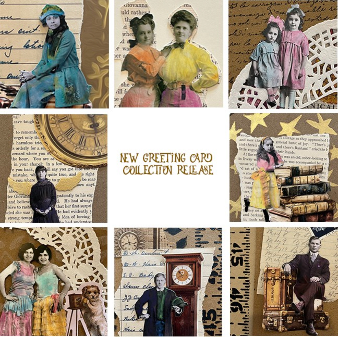 Each card is an original, mixed-media collage that merges vintage imagery with storytelling, coastal history, and artistic detail. These aren't just cards—they're frame-worthy keepsakes. In a world full of store-bought cards, Sharon's handmade art cards invite people to pause, notice the details, and connect in a more meaningful way.